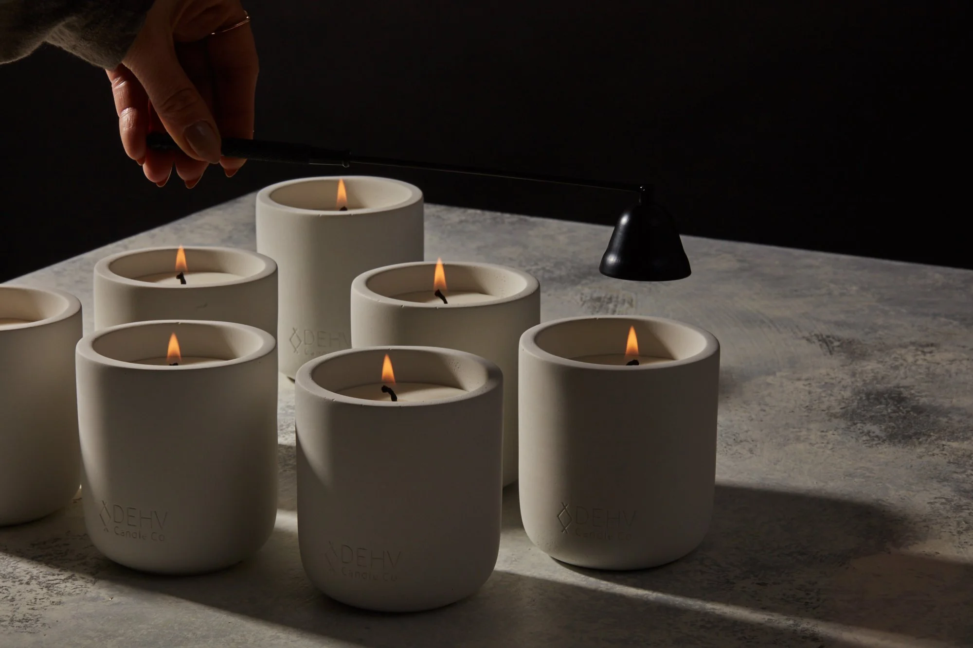 Discover the artistry of DEHV candles, thoughtfully crafted and hand-poured into our signature concrete vessels that showcase the unique beauty of natural materials. We use 100% non-GMO soy wax and lead free cotton wicks, ensuring a clean burn of up to 50 hours, infused with premium fragrances that create eco-friendly, one-of-a-kind blends.